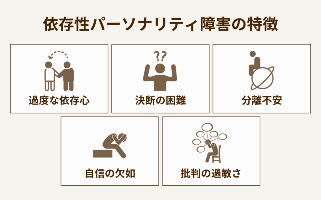 依存性パーソナリティ障害の主な特徴は、以下のとおりです。